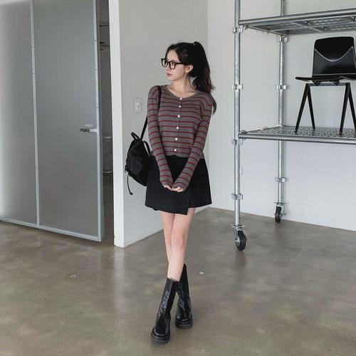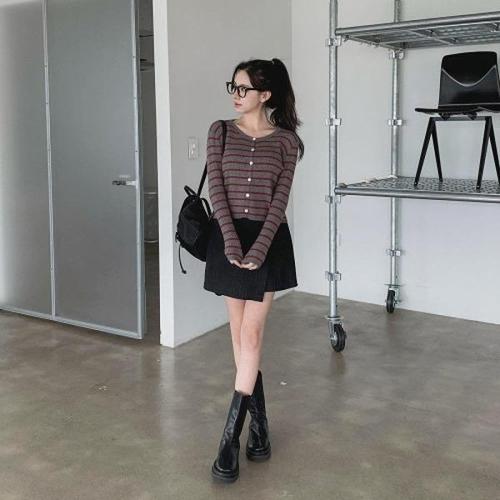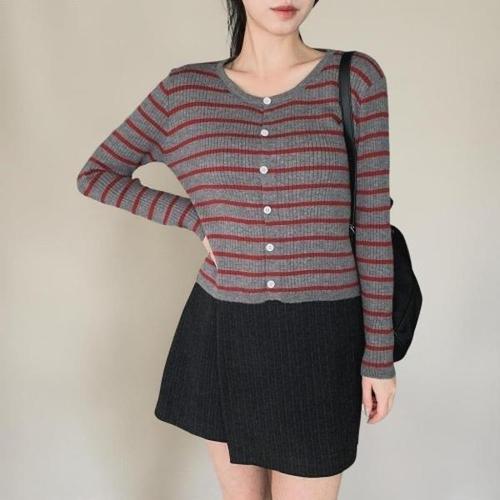 [신상오픈런]|CMJ6932|여성 스트라이프 배색 슬림핏 니트 가디건_23496667_597559