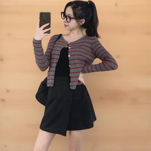 [미라클세븐]여성 스트라이프 배색 슬림핏 니트 가디건