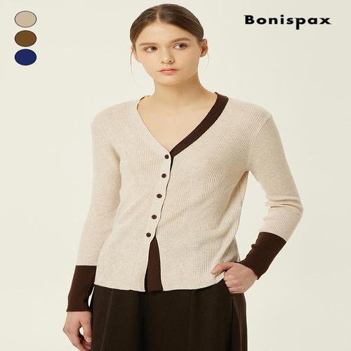 [보니스팍스]배색 V넥 슬림핏 니트 가디건 (XPAKG007M0)