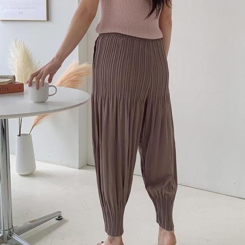 [옷자락]여성 소프트핏 승마바지 맞주름 아코디언 9부 하렘 팬츠