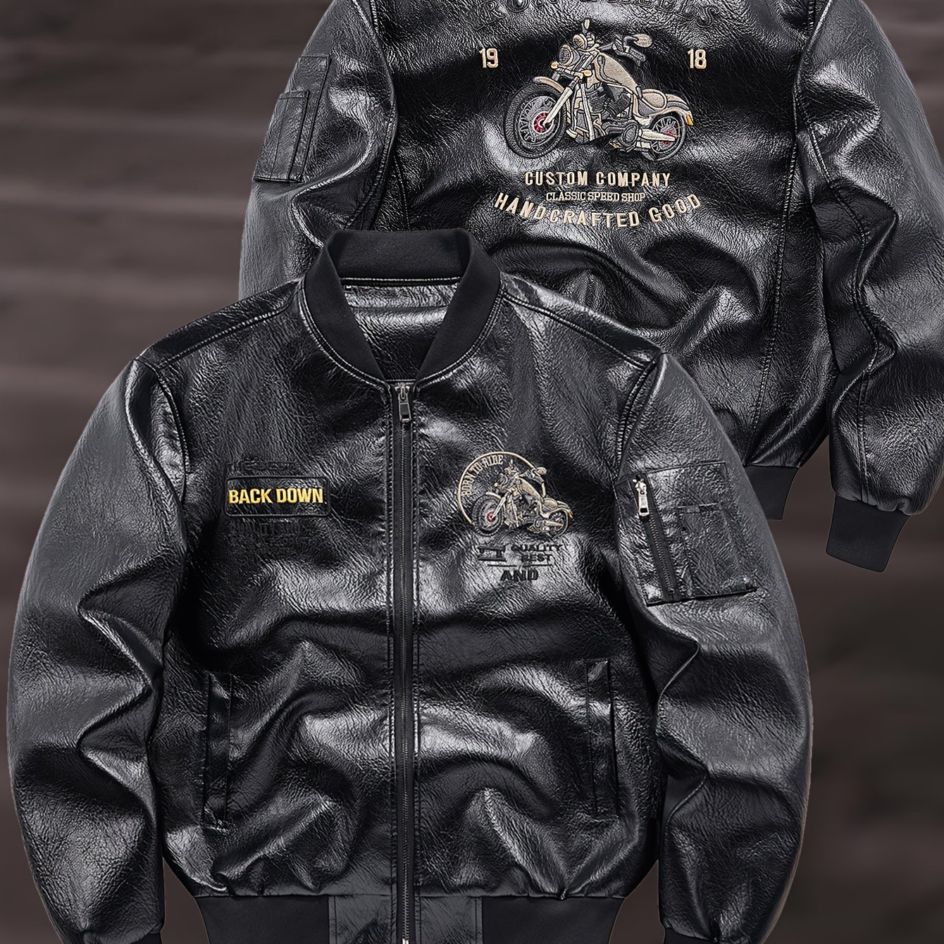 TEMU 남성 빈티지 자수 재킷 - 라이더 자수, 캐주얼 야구 스타일, 편안한 지퍼 칼라, 긴소매 코트, 일상복, 라이딩 의류 | 스탠드 칼라 재킷 | 파일럿 재킷