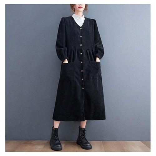 [오너클랜]인기상품 겨울용 코듀로이 브이넥 원피스 하객 커플 시밀러룩 [WFLHTVJ_260227]