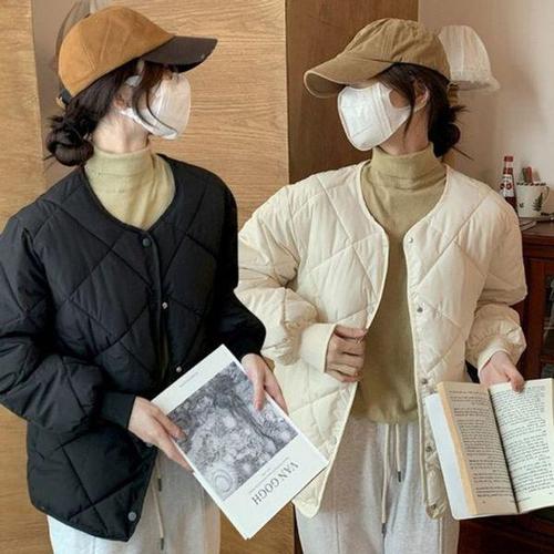 [에이치플러스몰]마름모 디자인 데일리 퀄팅 여성 보온 라운드넥 시보