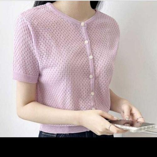 [에이치플러스몰]펀칭 여자니트반팔가디건 추천 패턴 밑단 꾸안꾸 시보