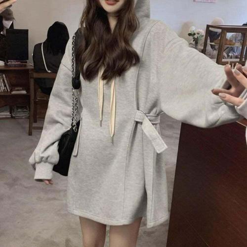 [오너클랜]인기상품 기모 안감 후드 루즈핏 시보리 오프숄더 흰색 캐주얼 원피스 [WFLKZXG_260304]