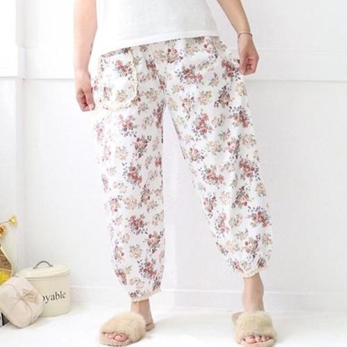 [옷자락]여자 9부 플라워 시보리 파자마바지 밑단 꽃무늬 팬츠