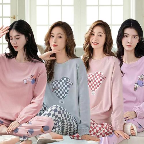 [로즈엘리]하트체크 시보리 긴팔 파자마 상하세트 2컬러