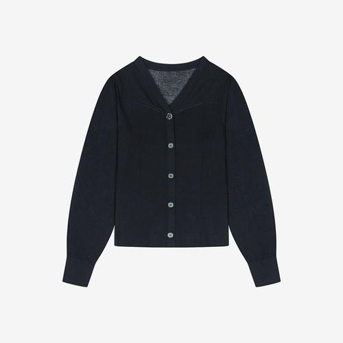 [시크블랙]퍼밍저 소매 버튼 브이넥 시스루 슬림 니트