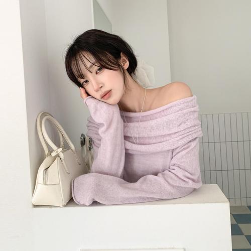 [시크블랙]브하근 슬림 시스루 오프숄더 니트