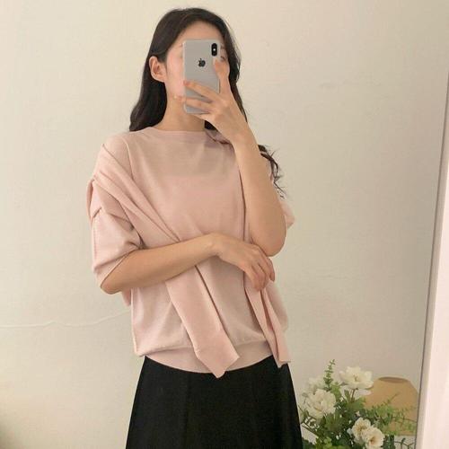 소고 세이브존01 볼륨 소매 시스루 니트 티셔츠 AL2TA33
