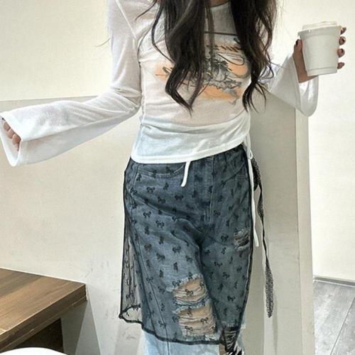 여자크롭티 시스루티셔츠 망사 메쉬 레이어드티