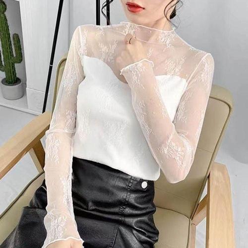 여성 레이스 블라우스 시스루 레이어드 프릴 티셔츠 이너 반목티 9컬러