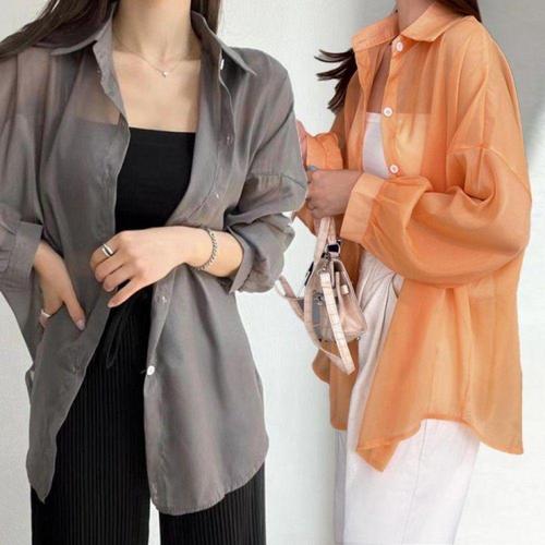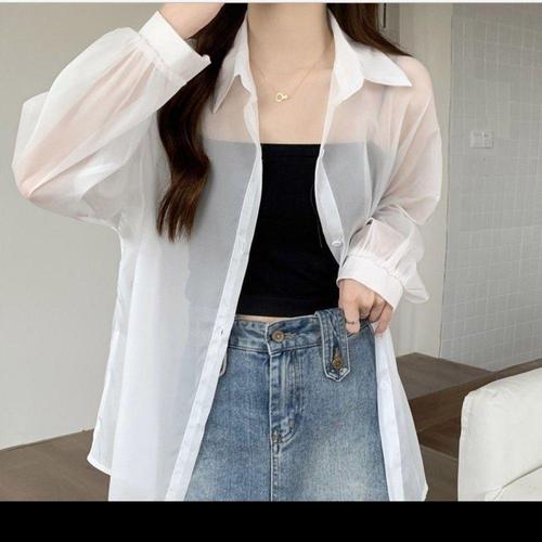 [오너클랜]인기상품 여성 여름용 시원한 시스루 블라우스 얇은 레이어드 셔츠 [WFLLA3F_260304]
