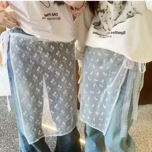 랩업레이어드 여성 힙커버 시스루 레이어드 랩스커트 1P 리본 레이스 랩업