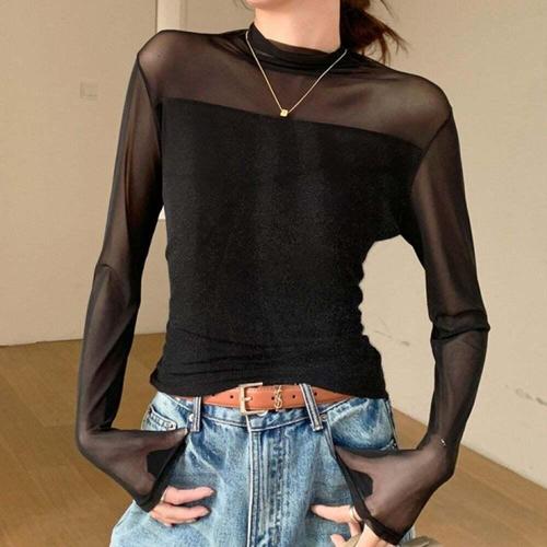[오너클랜]인기상품 여성 세미 터틀넥 시스루 긴팔티 1P 간절기 티셔츠 [WFLL9I8_260304]