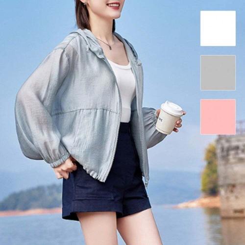 [오너클랜]인기상품 여자용 냉감 후드 바람막이 자외선 차단 시스루 점퍼 여행용 셔츠 [WFLLAM2_260304]