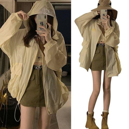[신상오픈런]여성 봄철 캠퍼스 스타일 시스루 후드 바람막이 점퍼