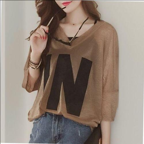 [에이치플러스몰]갈색 여성 추천 여름 나시 꾸안꾸 반팔 시스루 티 셔