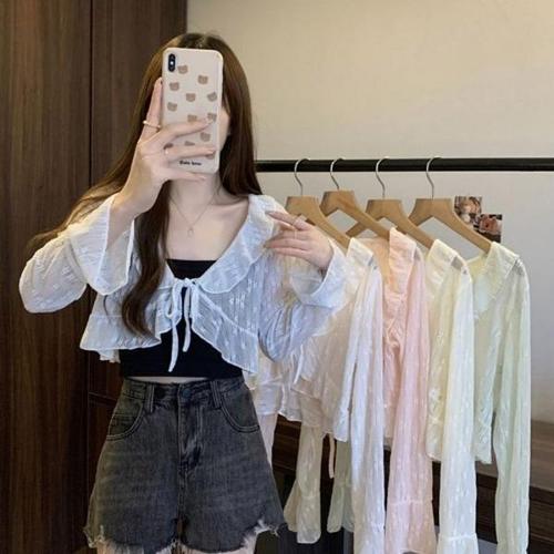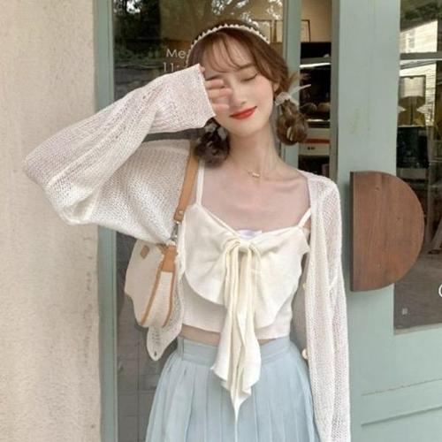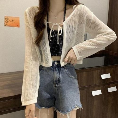 [엄지척]여자 얇은 망사 끈 숏가디건 봄 여름 시스루 가디건_19801432_667501