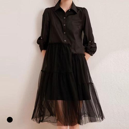 [옷자락]여자 슬림 셔츠핏 홀복 시스루 긴팔 스판 원피스