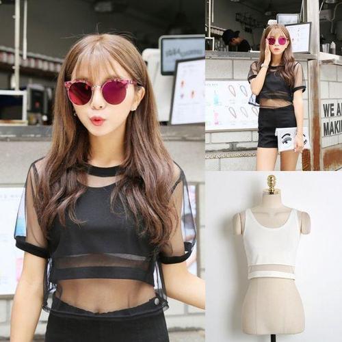 여자 여름 시스루 이너 브라탑 민소매 나시