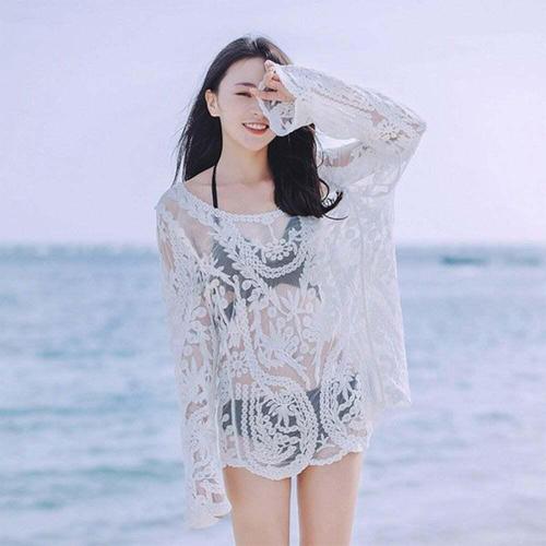 비치웨어 커버업 여름 긴팔 셔츠 시스루 여성 롱셔츠