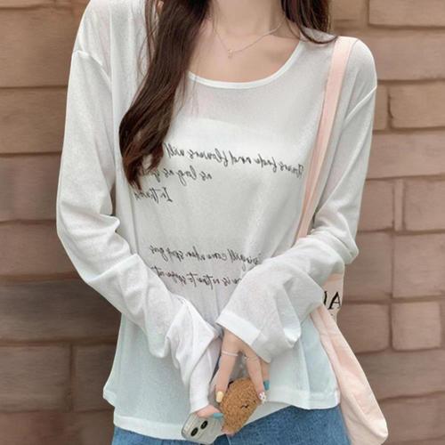 여성 루즈핏 시스루 얇은 긴팔 티셔츠 DHH-D78