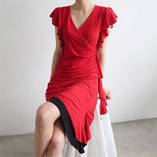 클리지 DP01 브이넥 프릴 리본 블라우스 CQ2WBL17