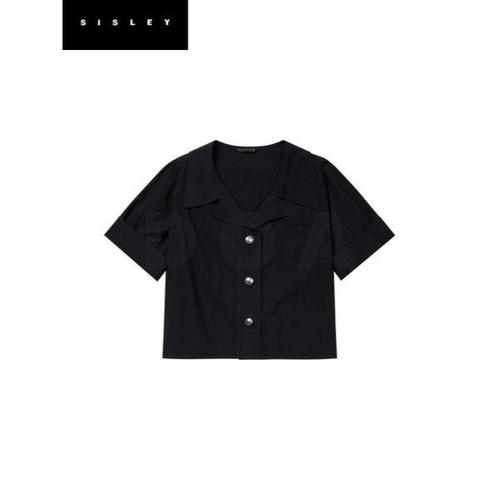 [시슬리]카라 반팔 크롭 블라우스_SAWSC7531