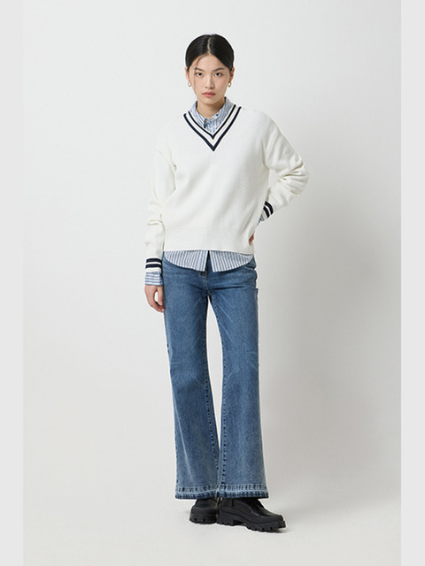 [시슬리] 브이넥 컨트라스트 니트_SAKP08511IV