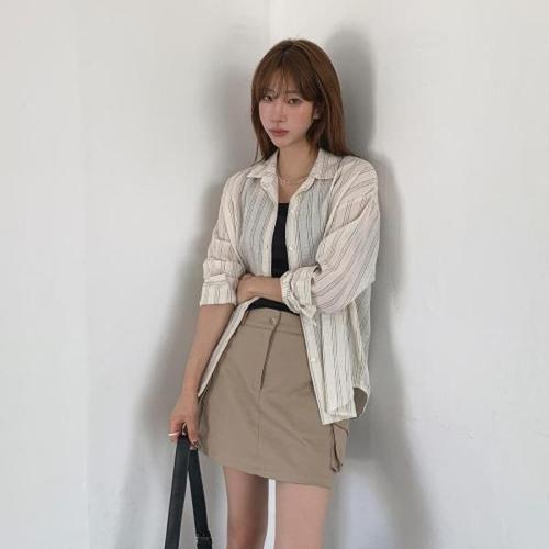 [옷자락] 여성 빈티지 스트라이프 시어서커 오버핏 셔츠