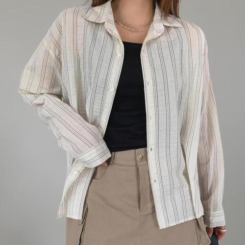 [신상오픈런]여성용 루즈핏 시어서커 스트라이프 셔츠 블라우스