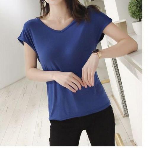 [에이치플러스몰]시원한 여성V넥반팔티 캐주얼 찰랑찰랑 모달소재 필수