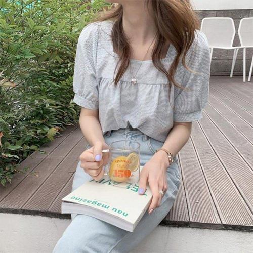 [오너클랜]인기상품 여자 체크 반팔 티셔츠 스퀘어넥 셔링 시원한 소재 여름용 [WFLL8YM_260304]