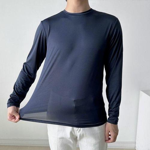 [모노무드]MMO 여름철 통기성 고급스러운 남성스타일 경량 풀슬리브 시원한 원형넥 탑