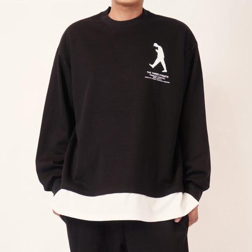남자 시티보이 라운드 긴팔 맨투맨 티셔츠 5C-TSA-Q095-블랙