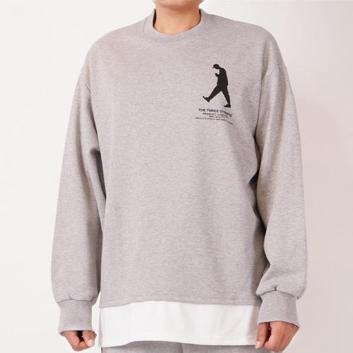 남자 시티보이 라운드 긴팔 맨투맨 티셔츠 5C-TSA-Q095-그레이