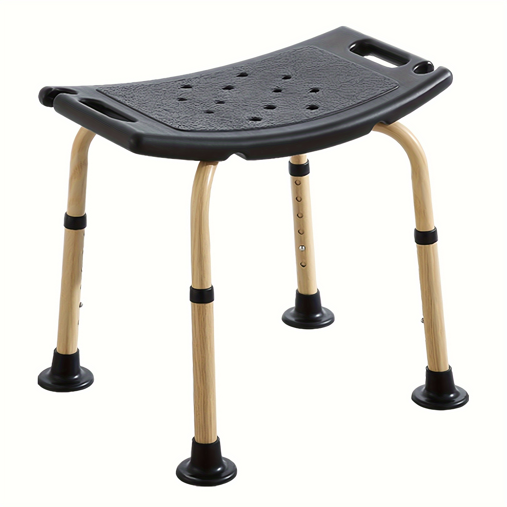TEMU 유니온케어 샤워 의자, 6단 높이 조절, 미끄럼 방지 고무 발 패드 및 등받이 포함, 노인 및 임산부, 장애인용 욕실 의자, 초대형 용량 150kg/330lbs, 높이 73-85cm, 블랙 색상