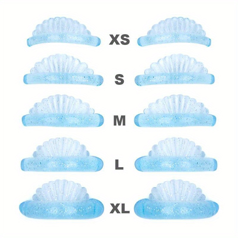 TEMU 새로운 5쌍 글리터 하늘 파란색 조개 껍데기 모양 속눈썹 연장 실리콘 패드, 매우 부드러운 속눈썹 리프트 펌 패드, 속눈썹 그라프팅 도구