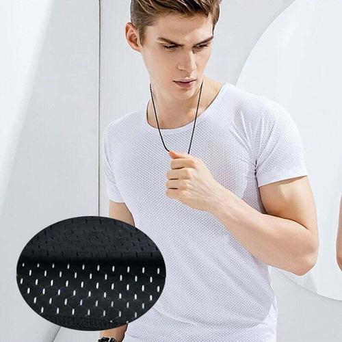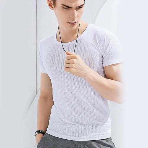 남성용 반팔 여름 순색 신축성 있는 캐주얼 얇은 아이스 실크 티셔츠