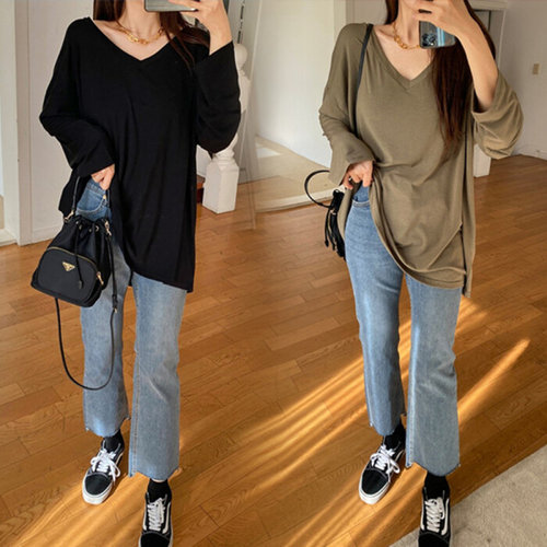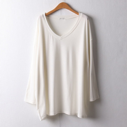빅사이즈베이직티 I268L409 실키브이넥긴팔티셔츠 RA
