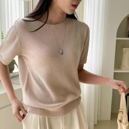[다잇템][다잇템] 여자 민무늬 반소매 울 라운드 심리스 SS 니트_16651688_588872