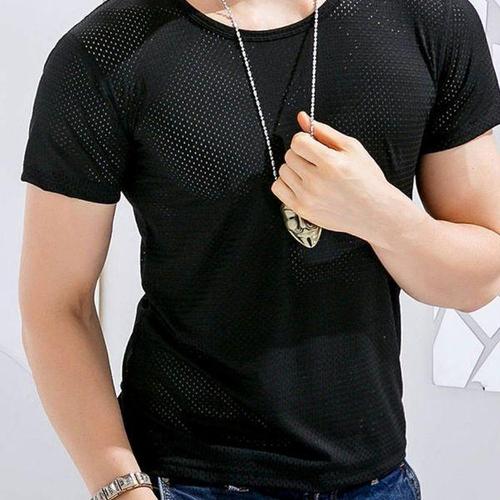 [에이치플러스몰]남성 쿨 티셔츠 여름 메쉬 아이스 심리스 반팔 2컬러
