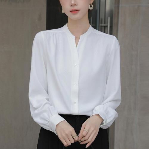네모엔룩 여성용 베이직셔츠 포멀 오피스 기본 카라넥 정장 유니폼 면접 긴팔 블라우스 셔츠 NL