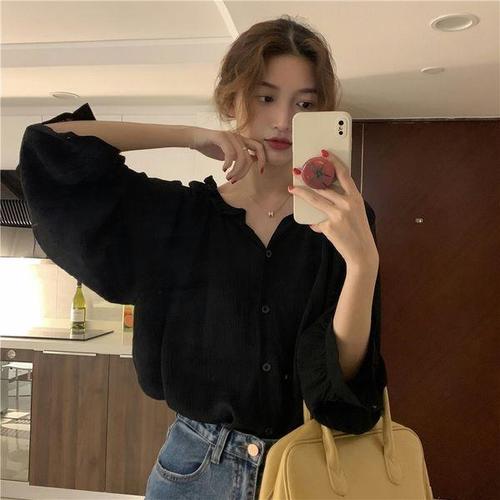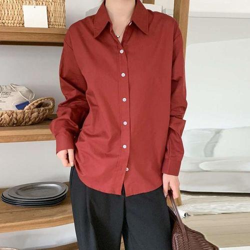 [신상오픈런]여성 심플 컬러 코튼 루즈핏 클래식 블라우스
