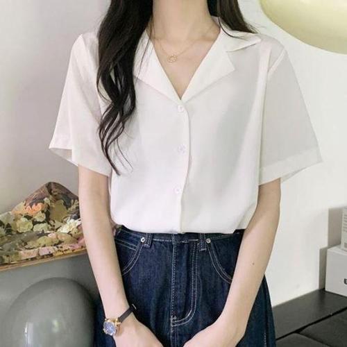 심플 여성 반팔 블라우스 여자 카라넥 반팔 셔츠 남방
