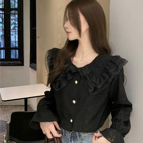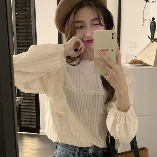 [무드수]빅카라 얼굴소멸 심플 레이스 블라우스