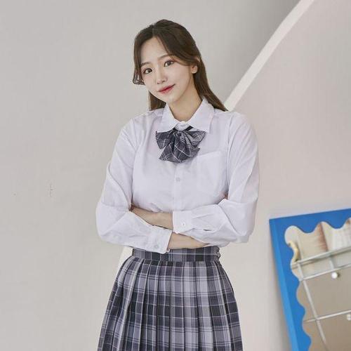 [에이치플러스몰]교복몰 심플 포켓 긴팔 블라우스 교복셔츠 교복 학생