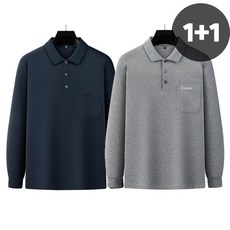 남성 중년 캐주얼 심플 포켓 카라 긴팔 티셔츠 2종세트