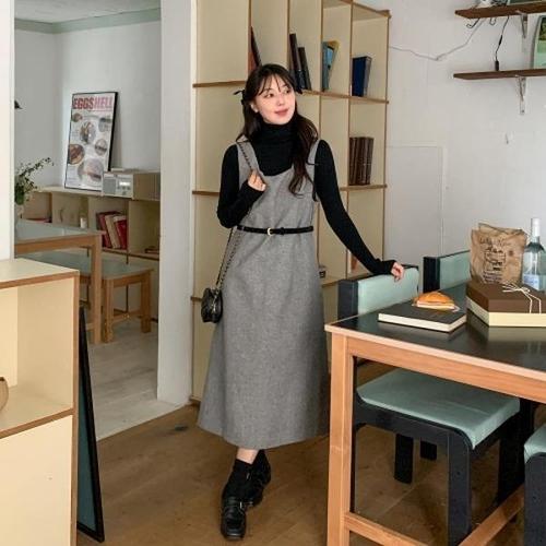 [신상오픈런]|CHD21DF|여자 목폴라 심플 티셔츠 울 뷔스티에 원피스 세트_19056322_597559